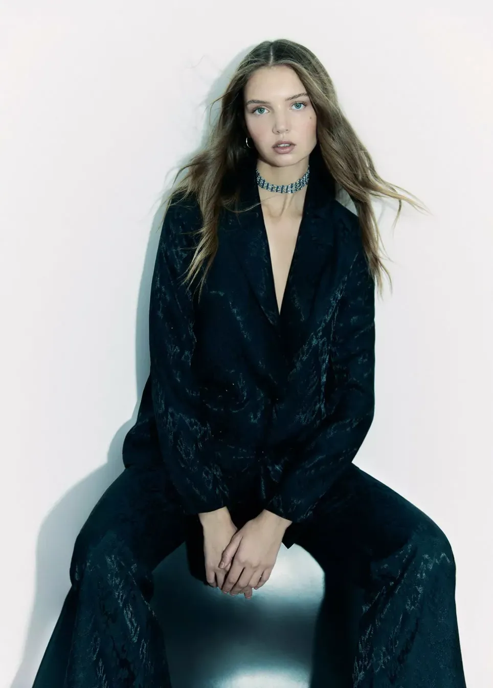 Americana Cruzada Estampada, Cuello Con Solapas Y Cierre Mediante Botones En El Frontal.Composicion: