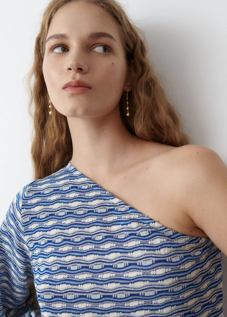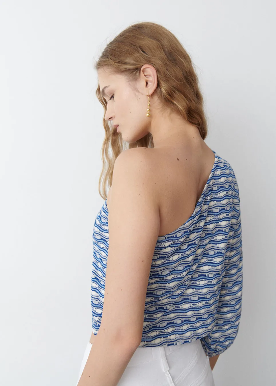 Camiseta Asimetrica Estampada Con Una Manga Larga Abullonada.Composicion: