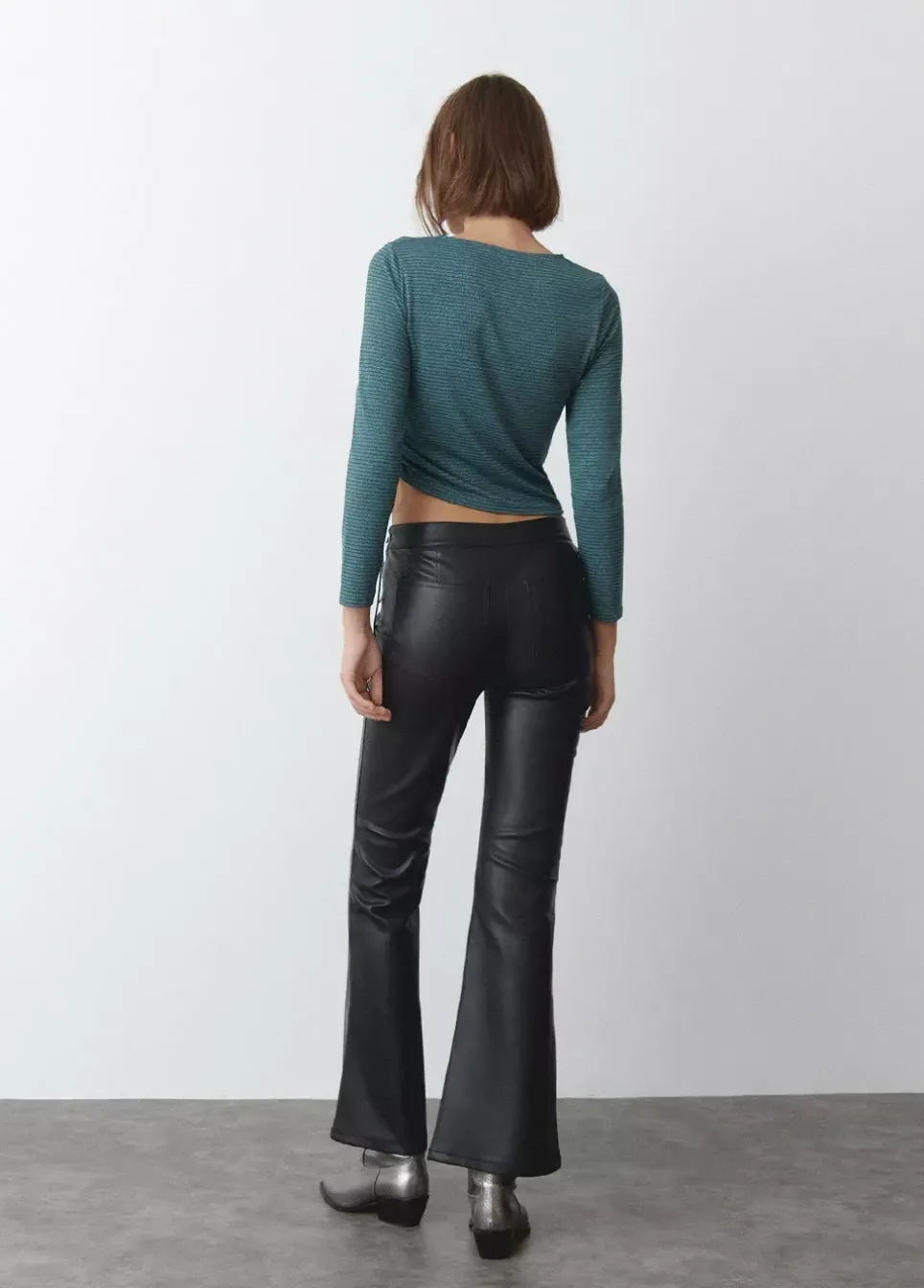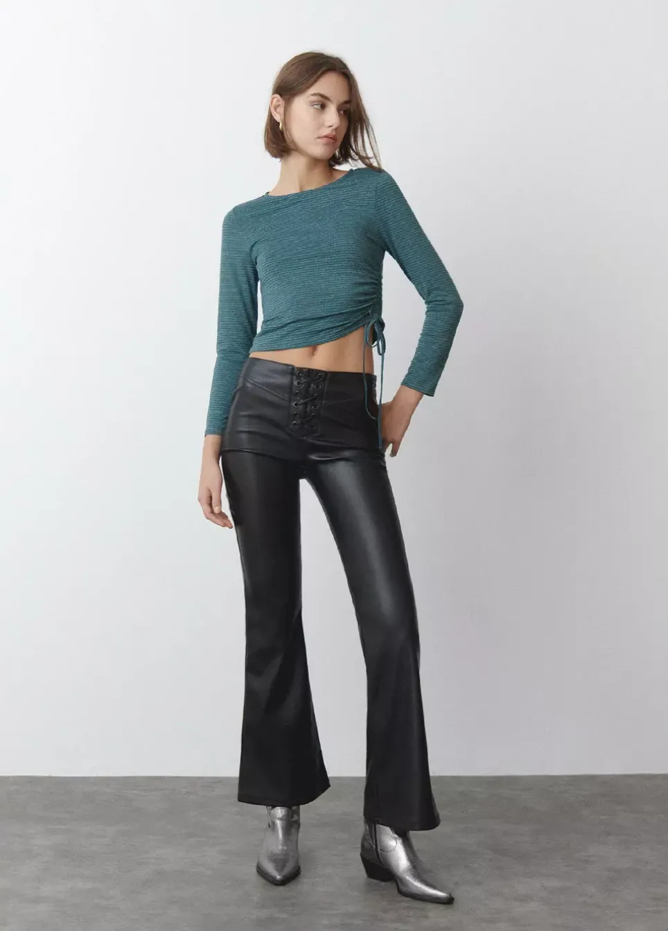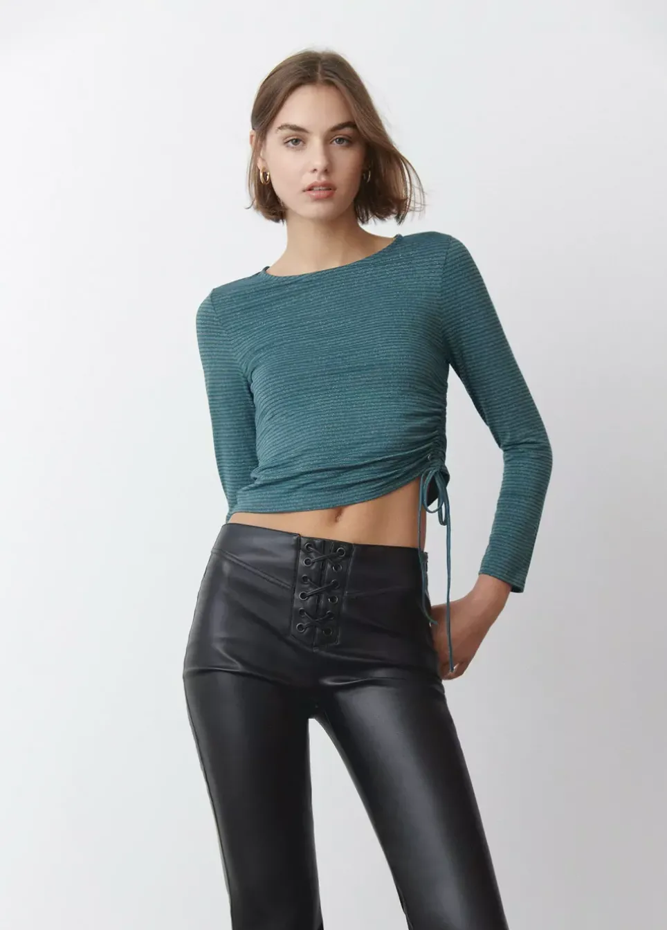 Camiseta De Rayas Con Hilo Metalizado, Manga Larga, Cuello Redondo Y Frunce En El Lateral Mediante Lazada.Composicion: