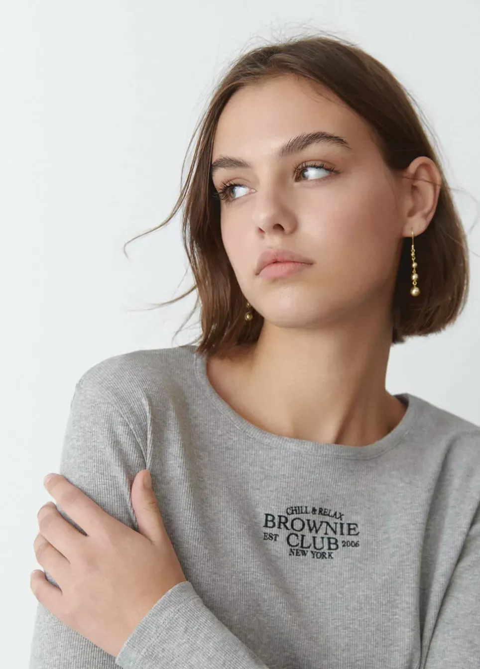 Camiseta Cropped De Manga Larga, Cuello Redondo Y Mensaje En El Frontal.Composicion: