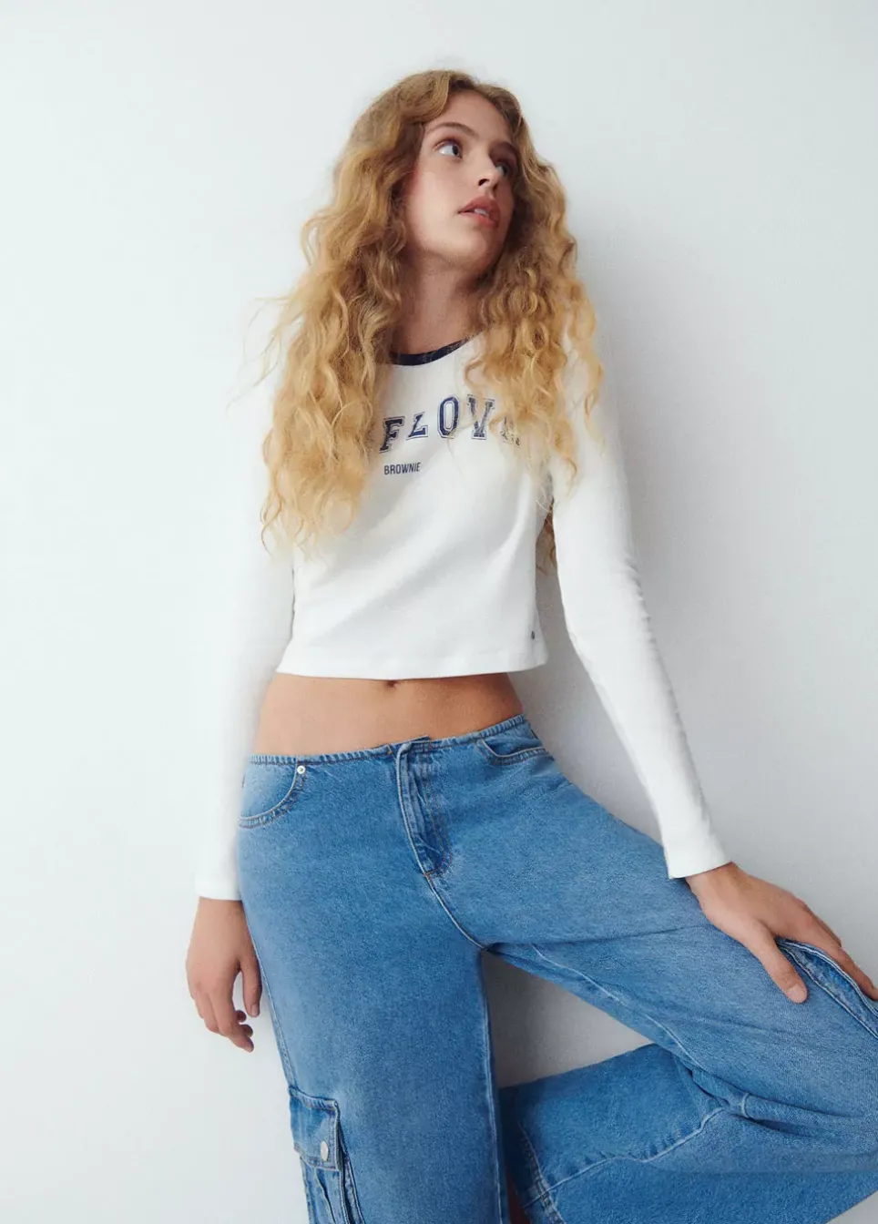 Camiseta De Manga Larga, Cuello Redondo A Contraste Y Mensaje En El Frontal.Composicion: