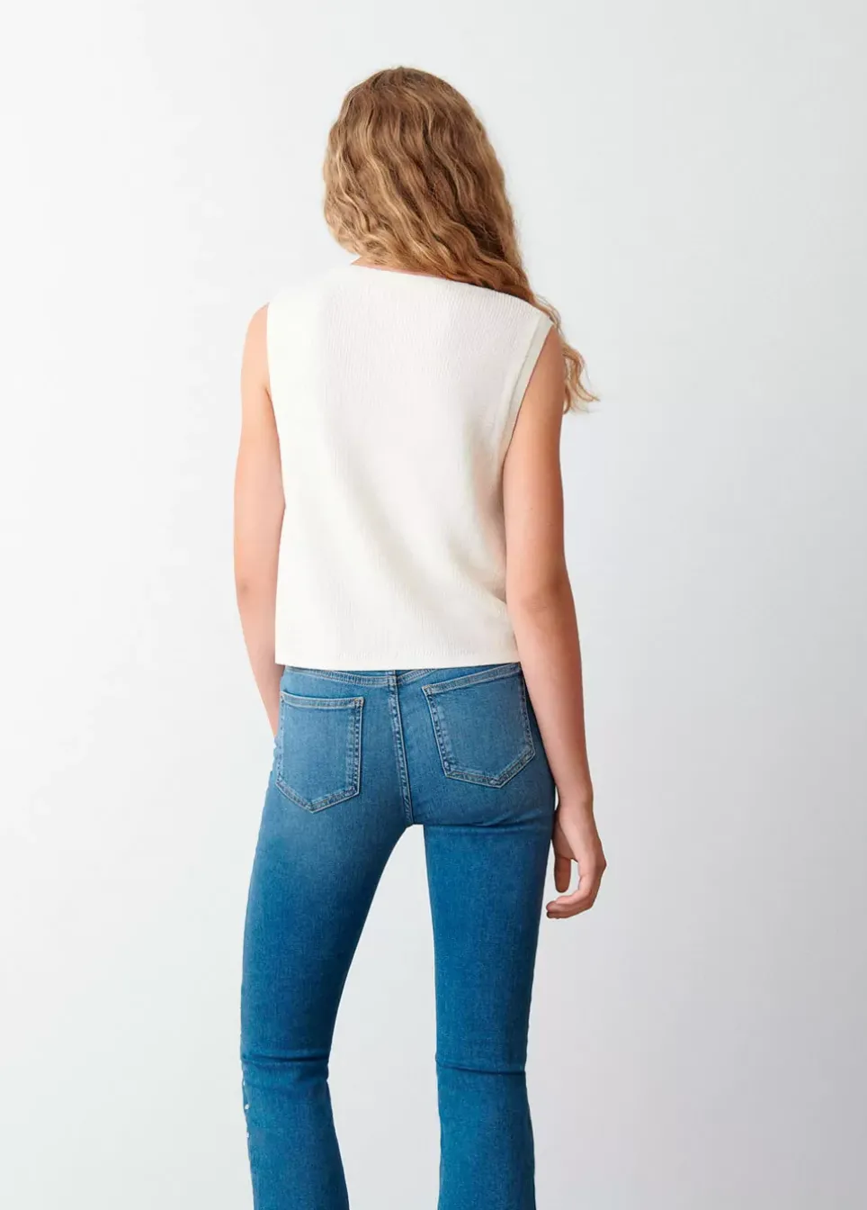Chaleco De Punto Liso Sin Mangas Y Cuello Redondo.Composicion: