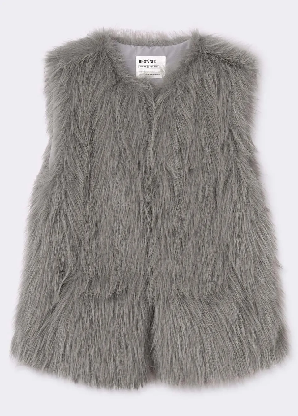 Chaleco De Pelo Sintetico Sin Mangas Y Cuello Redondo.Composicion: