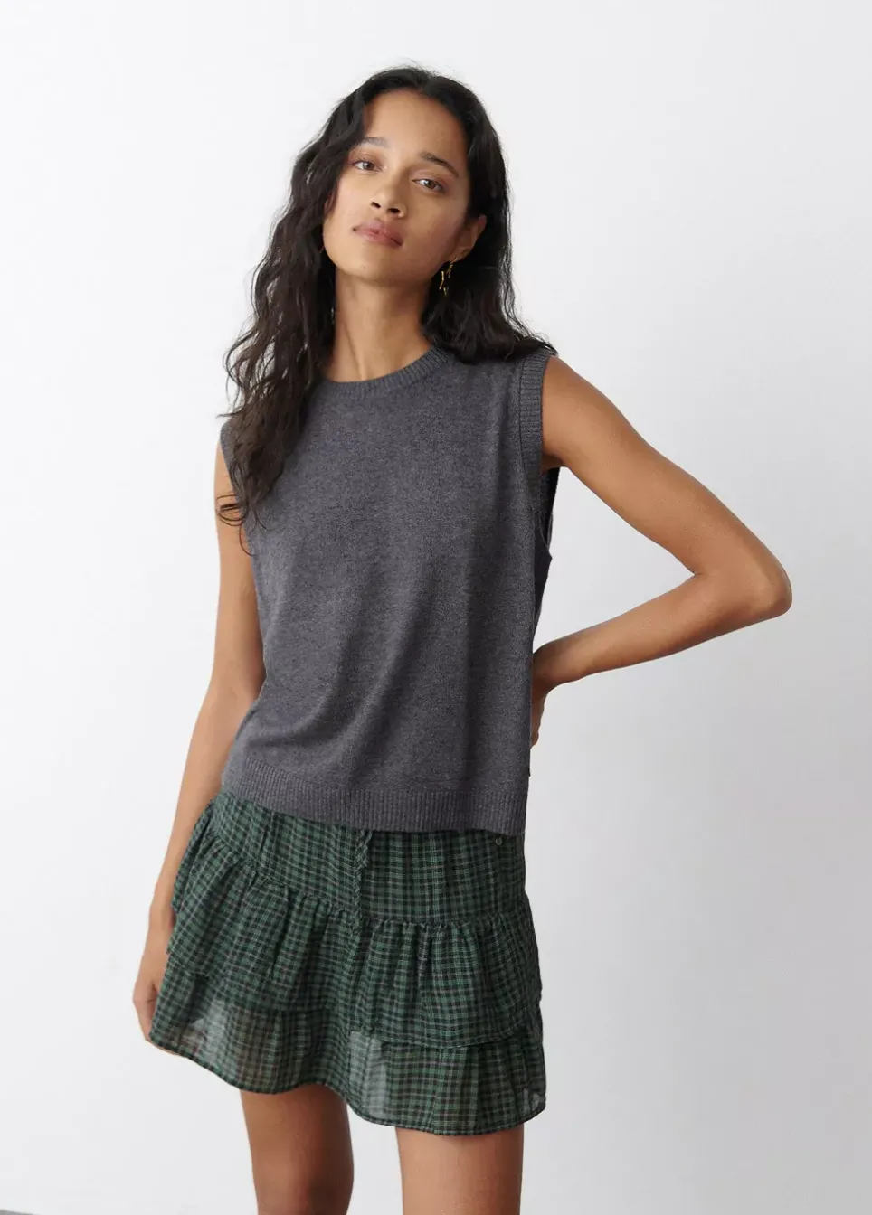 Chaleco De Punto Fino Sin Mangas Y Cuello Redondo.Composicion: