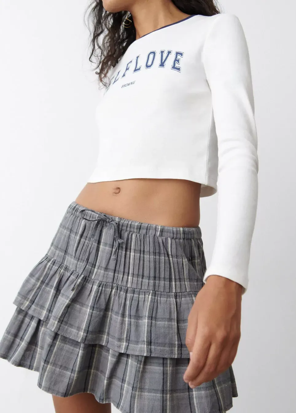 Falda Corta De Cuadros Con Goma En La Cintura Y Volantes.Composicion: