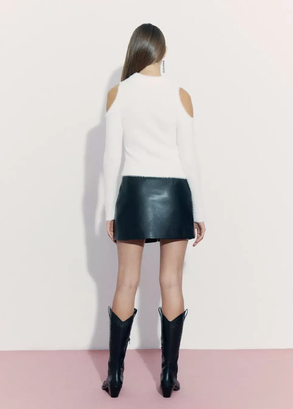 Falda Corta Efecto Piel Con Detalle De Tachas Redondas Y Cremallera En El Frontal.Composicion: