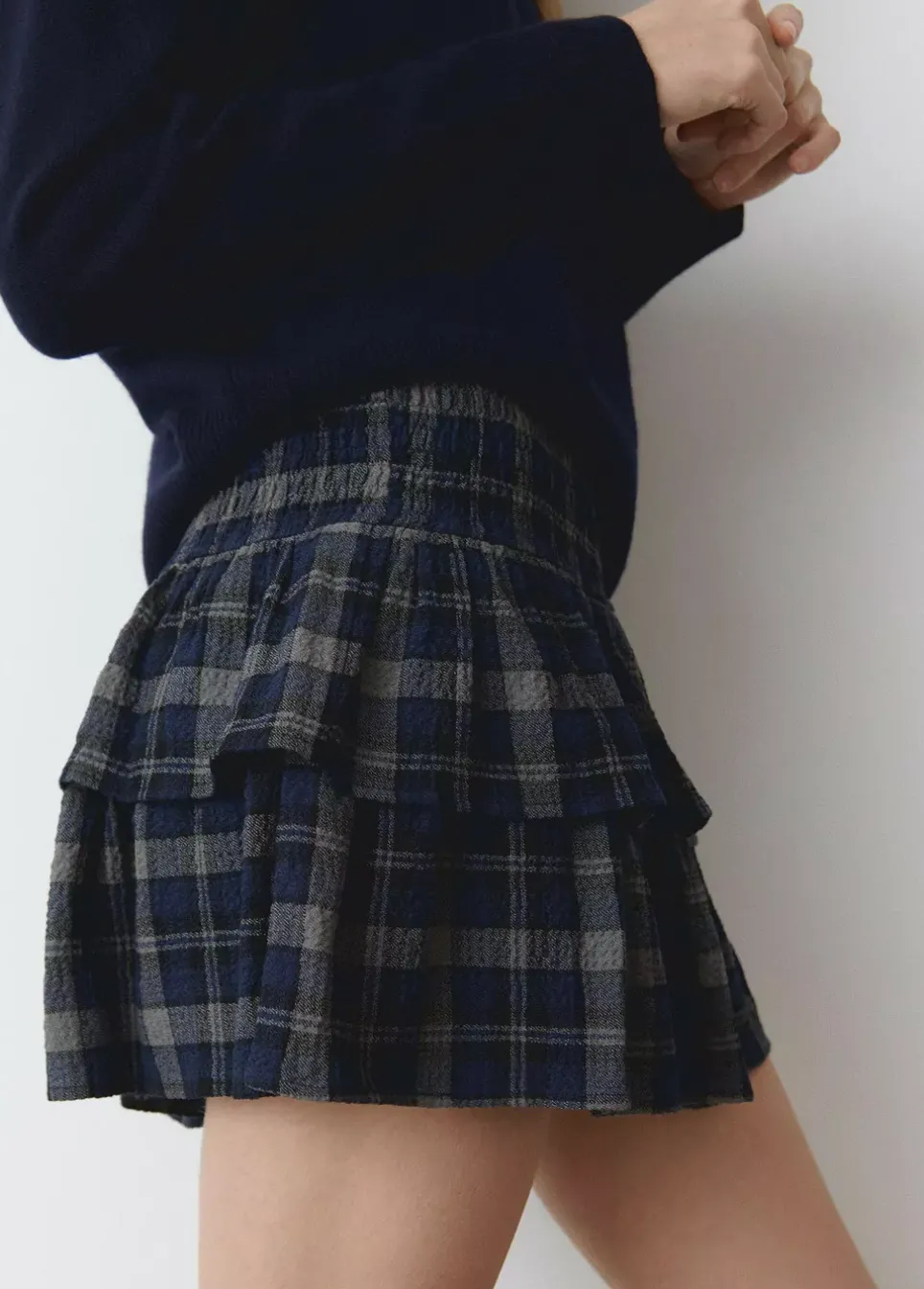 Falda Corta De Cuadros Con Volantes Y Smock En La Cintura.Composicion: