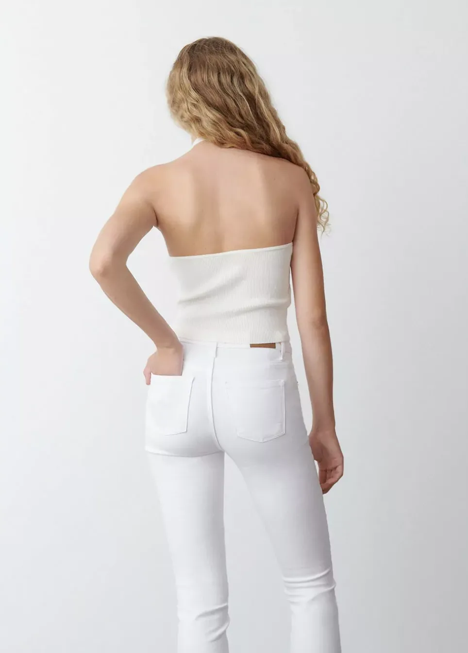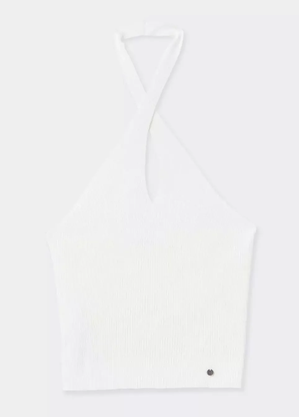 Top Corto Liso Con Cuello Cruzado Tipo Halter, Pequena Apertura En El Escote Y Escote En La Espalda.Composicion: