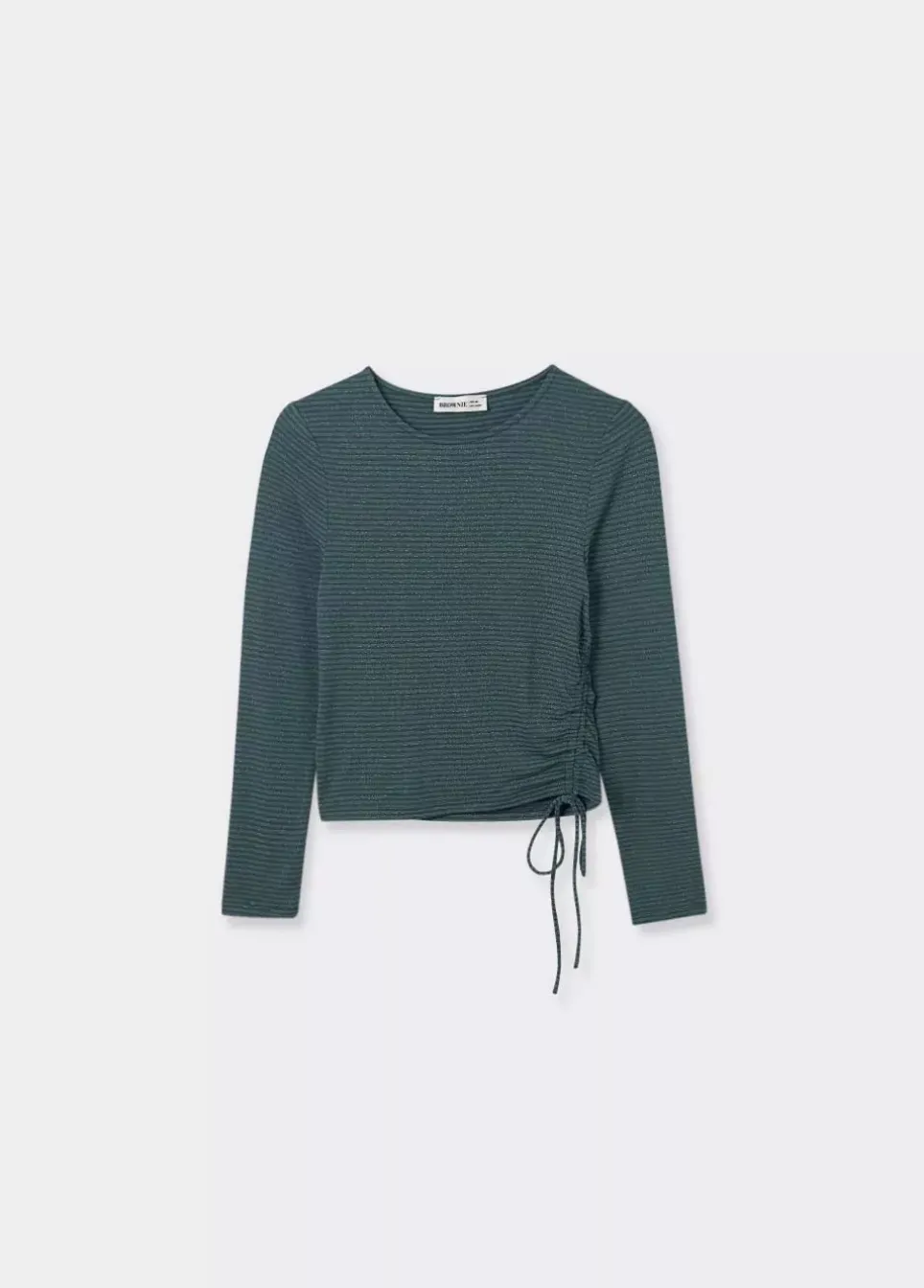 Camiseta De Rayas Con Hilo Metalizado, Manga Larga, Cuello Redondo Y Frunce En El Lateral Mediante Lazada.Composicion: