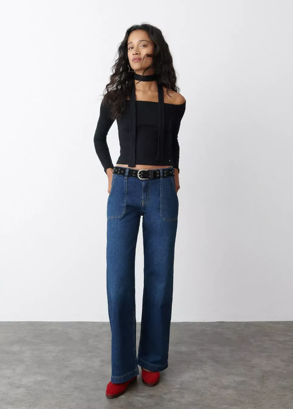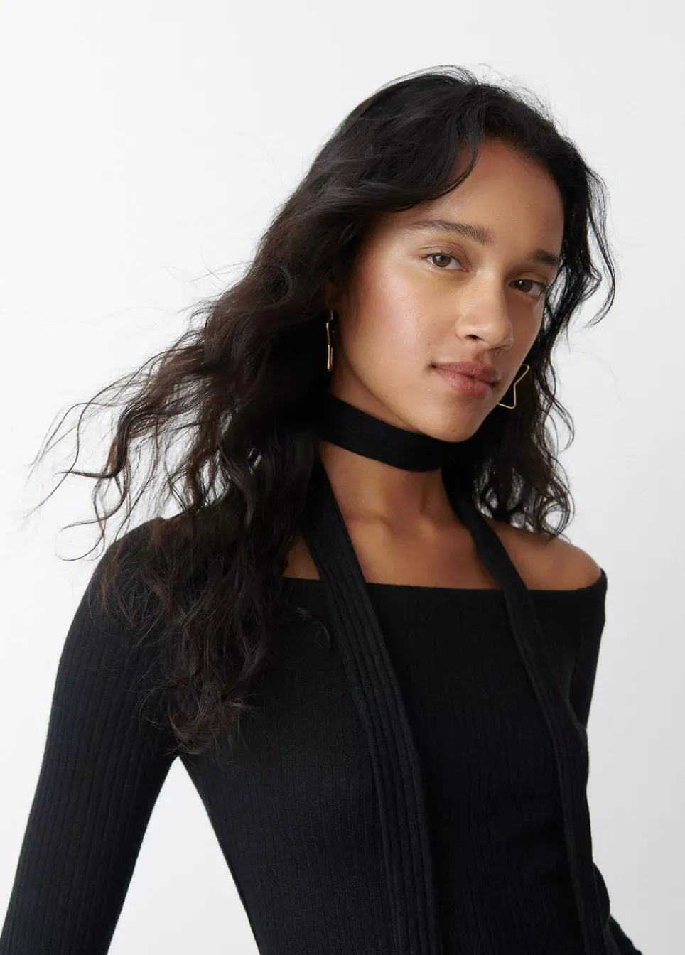 Camiseta De Manga Larga, Cuello De Barco Y Lazada En El Cuello.Composicion: