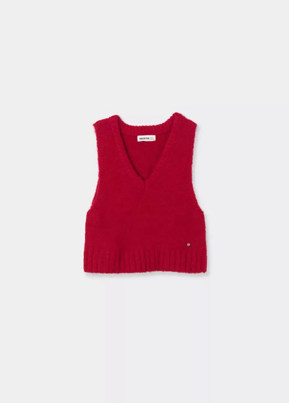 Chaleco Cropped De Punto Sin Mangas Y Cuello De Pico.Composicion: