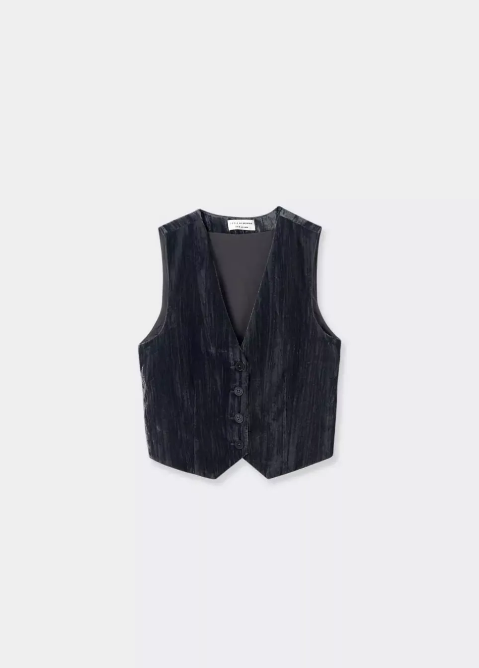 Chaleco De Vestir De Terciopelo Sin Mangas, Cuello De Pico Y Botones En El Frontal.Composicion: