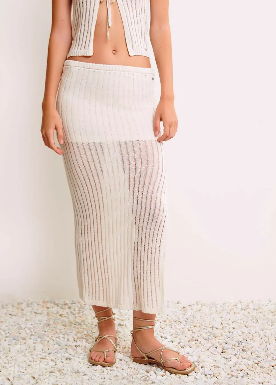 Falda Larga De Punto Calada Con Goma En La Cintura.Composicion: