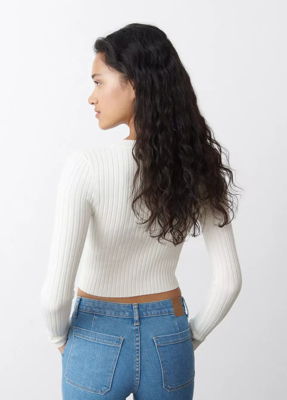 Jersey Cropped Basico De Canale De Manga Larga Y Cuello Redondo.Composicion:
