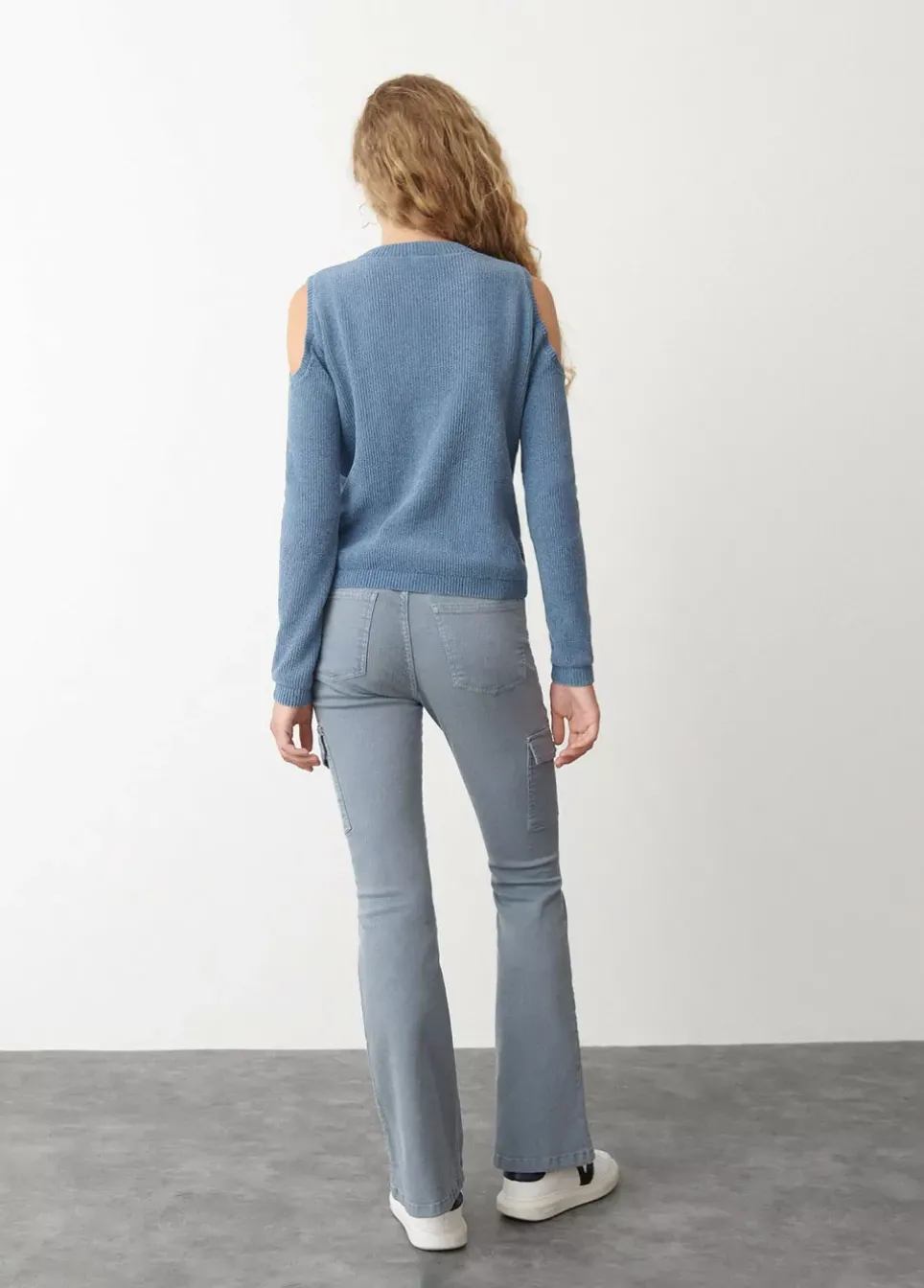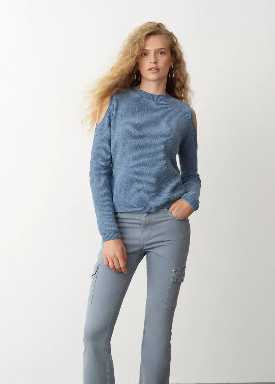 Jersey De Chenilla De Manga Larga, Hombros Descubiertos Y Cuello Redondo.Composicion: