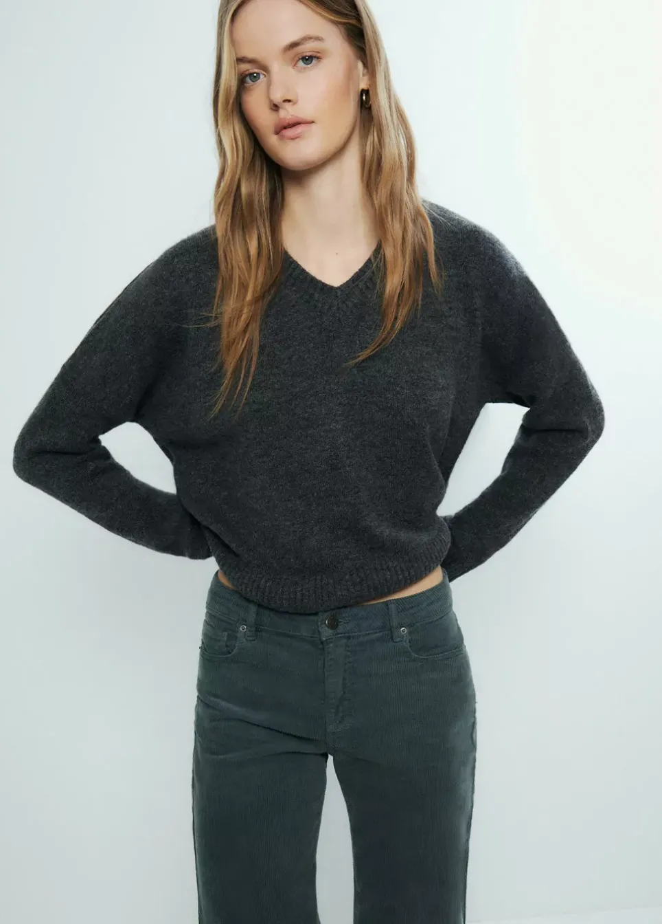 Jersey Liso De Cuello Pico En Color Gris.Composicion: