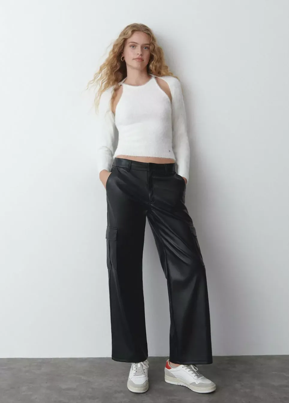 Manguito Cropped De Pelo Sintetico De Manga Larga.Composicion: