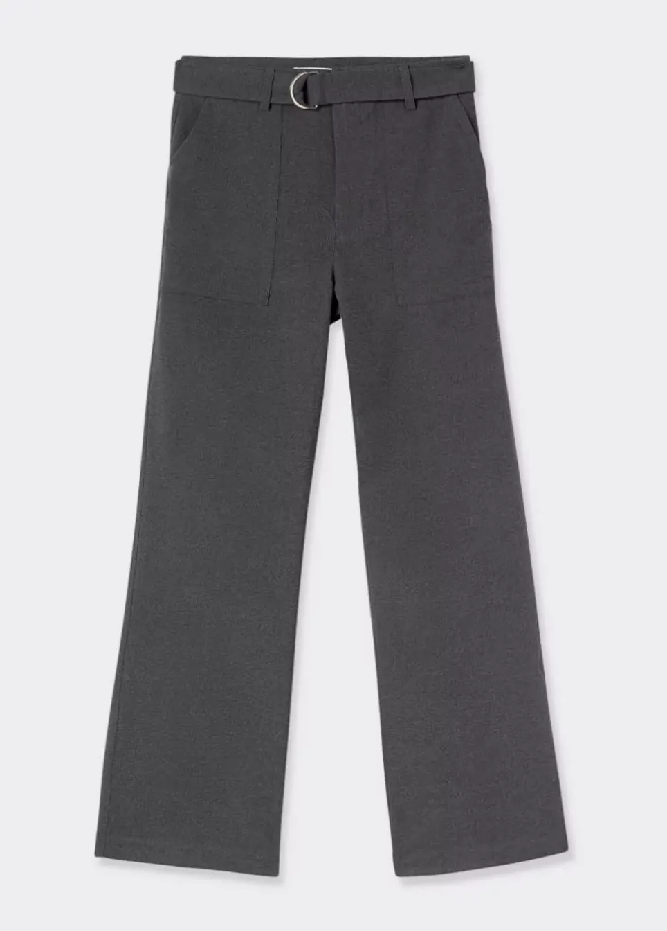 Pantalon Recto Liso De Tiro Medio Con Detalle De Cinturon Y Dos Maxi Bolsillos En El Frontal.Composicion: