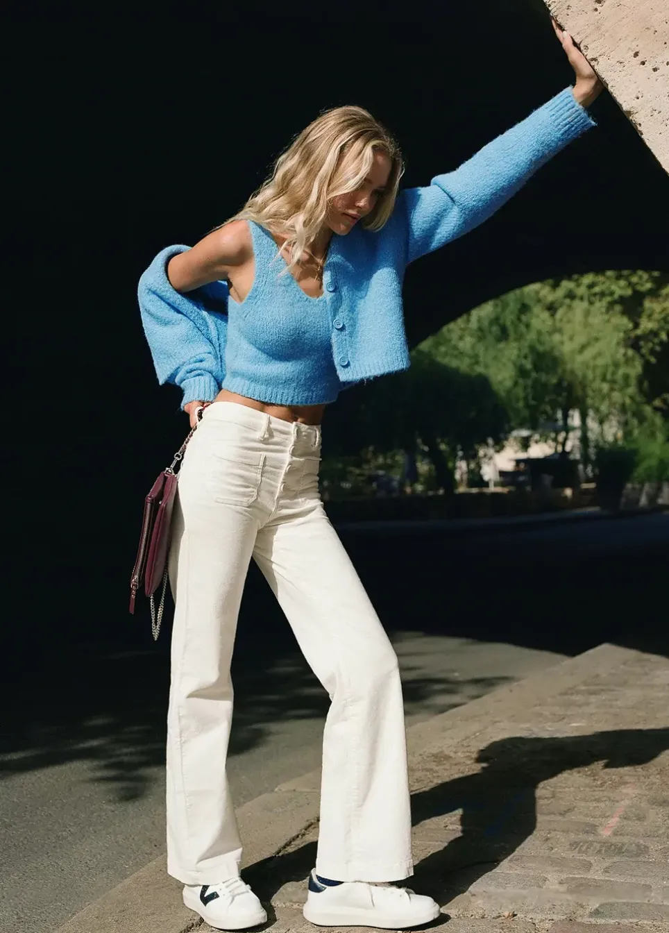 Top Cropped De Punto De Tirantes Y Cuello De Pico.Composicion: